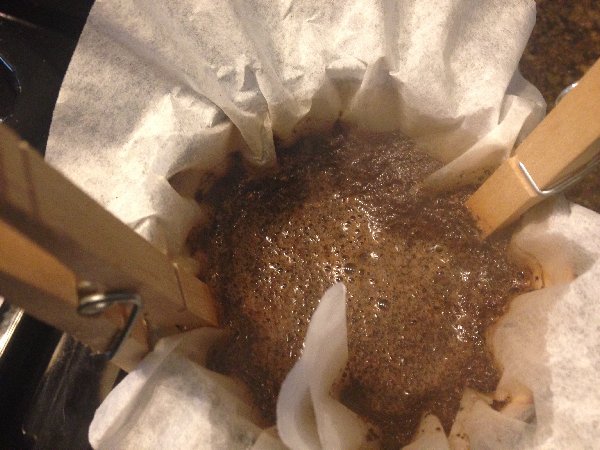 Anyway, to get back to my story, once I made myself a steaming, fragrant mug of cocoa+coffee using a filter and a couple of clothespins I drank about a third of it and dumped the rest down the drain.