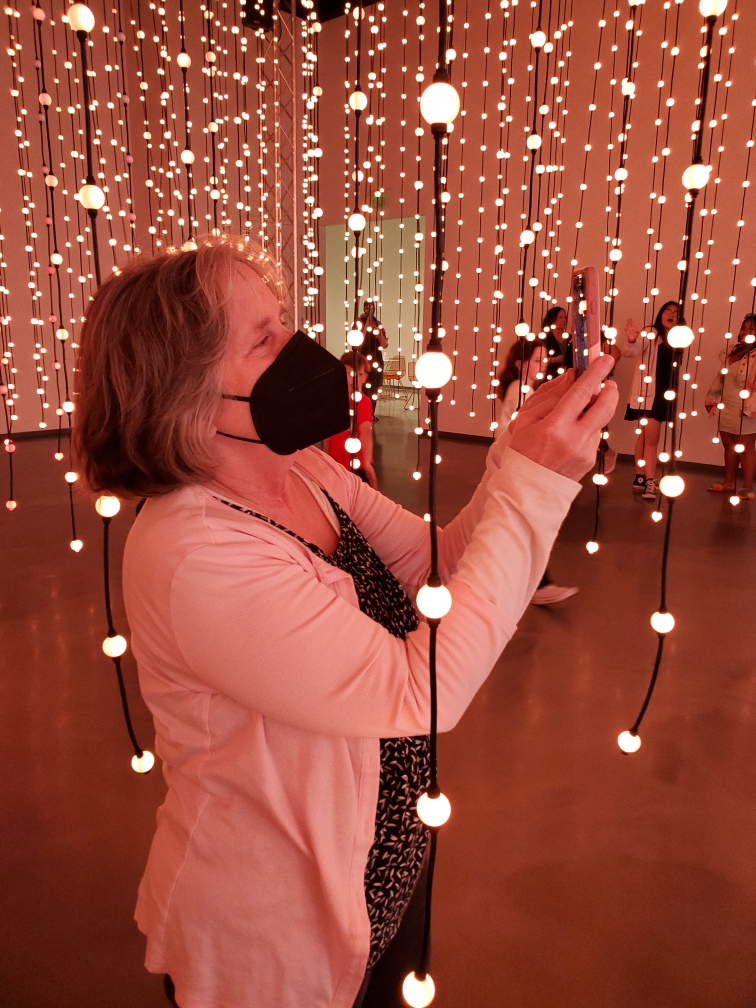 Our first stop after the train ride from Lansdale to Jefferson Street was Wonderspaces (https://philadelphia.wonderspaces.com), a series of art installations. A waiver had to be signed before our arrival, due to certain uses of light, etc., which could affect those with neurological disorders. I avoided several displays for this reason. Some of the installations might have been equally at home in the Museum we visited after lunch, like Radiance. My two favorites, and I say two because I cannot make up my mind which should come out on top, were Fuji by Joanie Lemercier, which is a part of the artist’s series on volcanoes, and On a Human Scale by Matthew Matthew, an interactive instrument involving images of people and a souped-up harpsichord. A close second is Radiance (Infinity Box No. 6) by Matt Elson. Rather than describe them, I have included some photographs below. However, finding myself so “interactive” with On a Human Scale, I unfortunately took neither photograph or video. I will amend this post in the future to include the videos I took of Fuji and Radiance. You can view photos, descriptions and further information on Wonderspaces website (above).