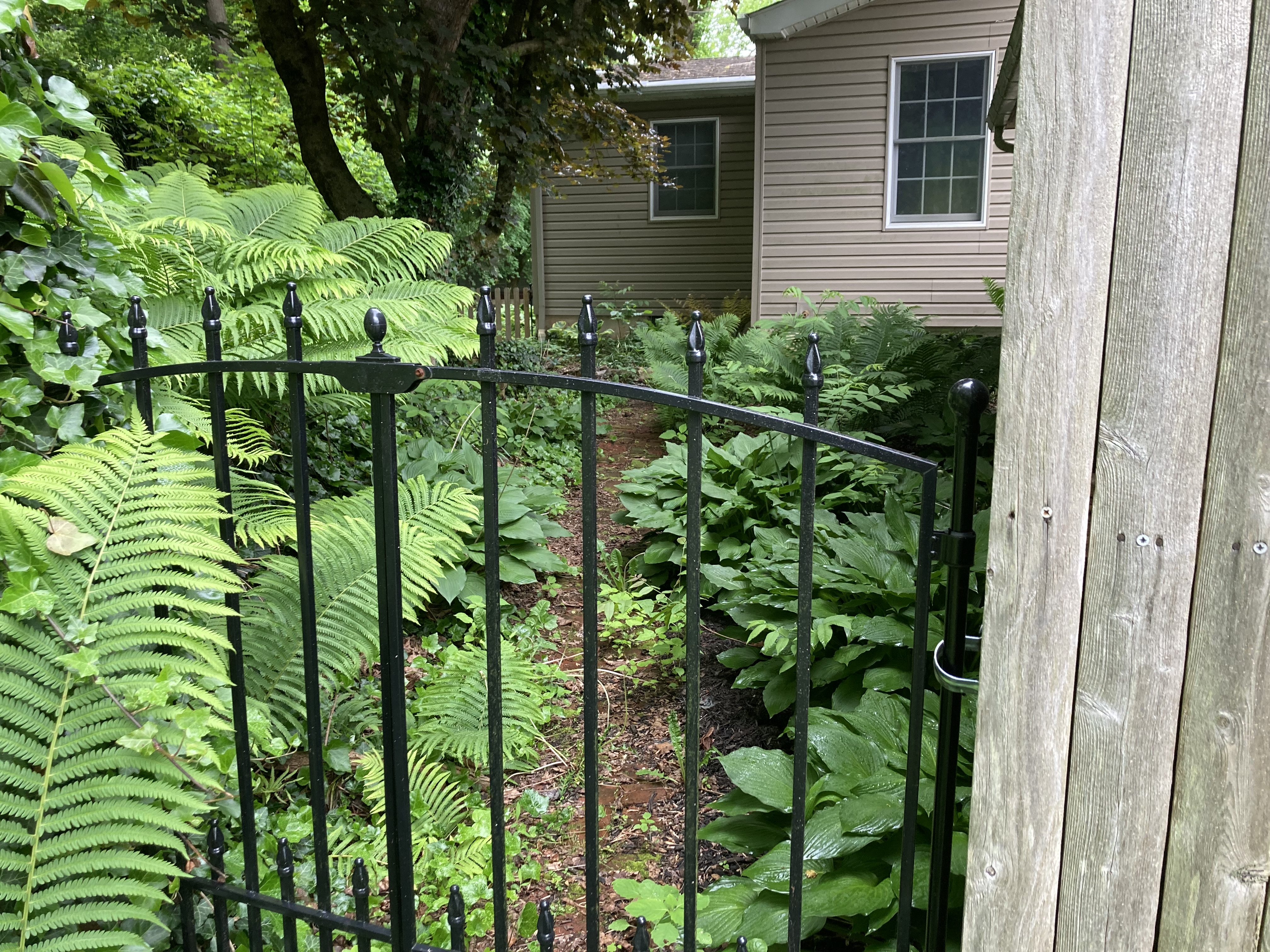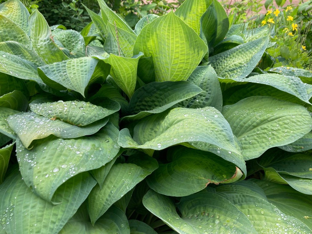 I know the song is Rainy Days and Mondays, but it happened to be a rainy Friday when these pictures were taken. I walked around in a rain that had turned to mist, noting how green the plants have all become, how lush the ferns, how the droplets clung to the surfaces, especially the hosta’s broad leaves. The shade garden looks a bit like a secret world calling to me.